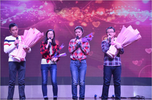 喜慶歡快的開場舞拉開了聯(lián)歡會的序幕,首先,總經(jīng)理陳總致新春賀詞,表達了對全體員工的謝意和祝福,希望大家再接再厲,再創(chuàng)佳績。聯(lián)歡會亮點紛呈,精彩不斷,員工自導自演的小品《大話地主》、《大力膠》構思巧妙,幽默風趣,贏得了觀眾的熱烈掌聲;詩朗誦《勇者無懼,海闊天空》激昂向上,振奮人心;歌曲《我的好兄弟》、《365個祝?!烦懥舜蠹倚闹械淖T负拖M?hellip;…聯(lián)歡會現(xiàn)場祥和而熱烈,掌聲、笑聲、歡呼聲不斷,互動游戲及幸運抽獎更是將現(xiàn)場氣氛推向高潮。